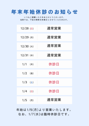 また、2026年1月5日より診療時間が「10:00~18:00」に変更となります。